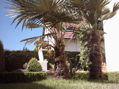Auch in Deutschland ist es möglich Palmen im Garten auszupflanzen (wie in Italien), es kommt nur auf die richtige Art und etwas mehr Pflegeaufwand an. Mein Garten liegt in Bayern, wo das Wetter bekanntlich auch einige sehr kalte (-25°) Monate kennt. Habe selbst seit Sommer 2001 mehrer Fächerpalmen und seit Mai 2004 die Japanische Faserbanane erfolgreich im Garten ausgepflanzt.